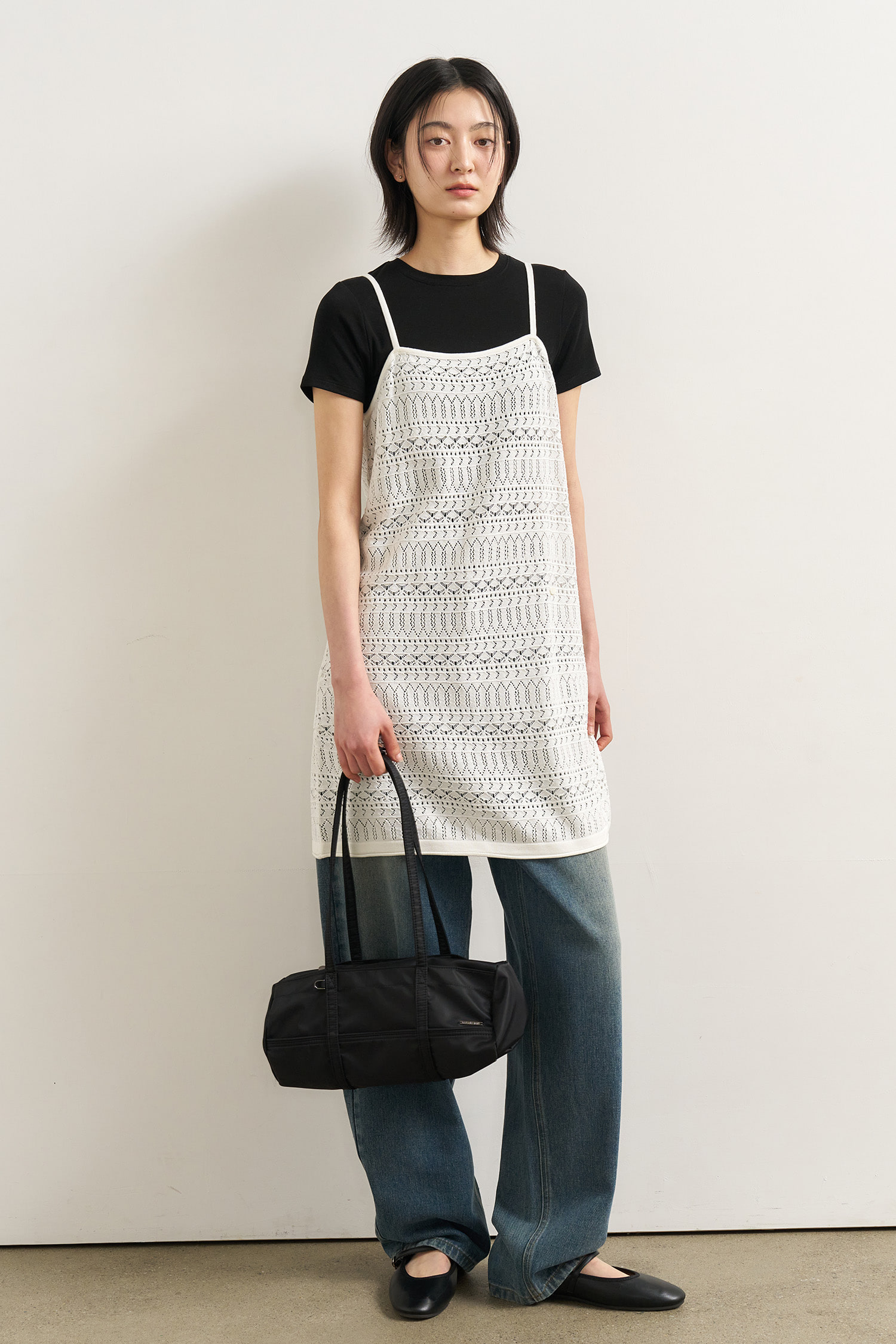 WOMAN 크로셰 롱 레이어드 니트 탑 [WHITE]