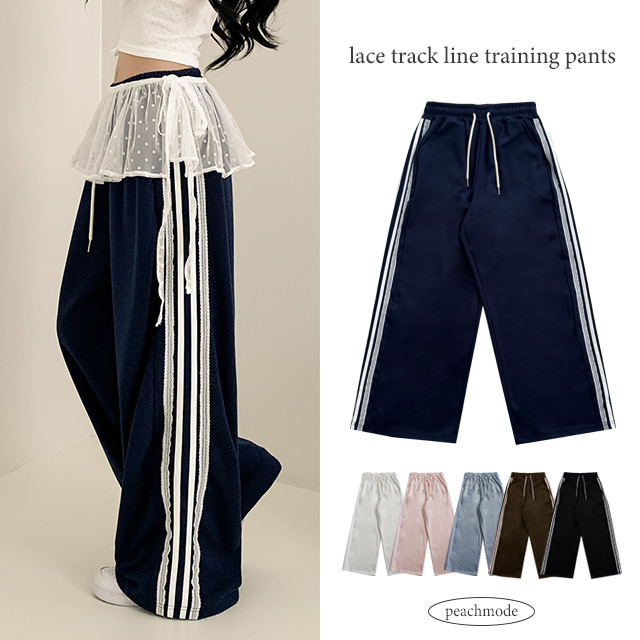 [국내제작/봄신상] 데미슨 레이스 트랙 라인 밴딩 와이드 트레이닝 팬츠 (6color)