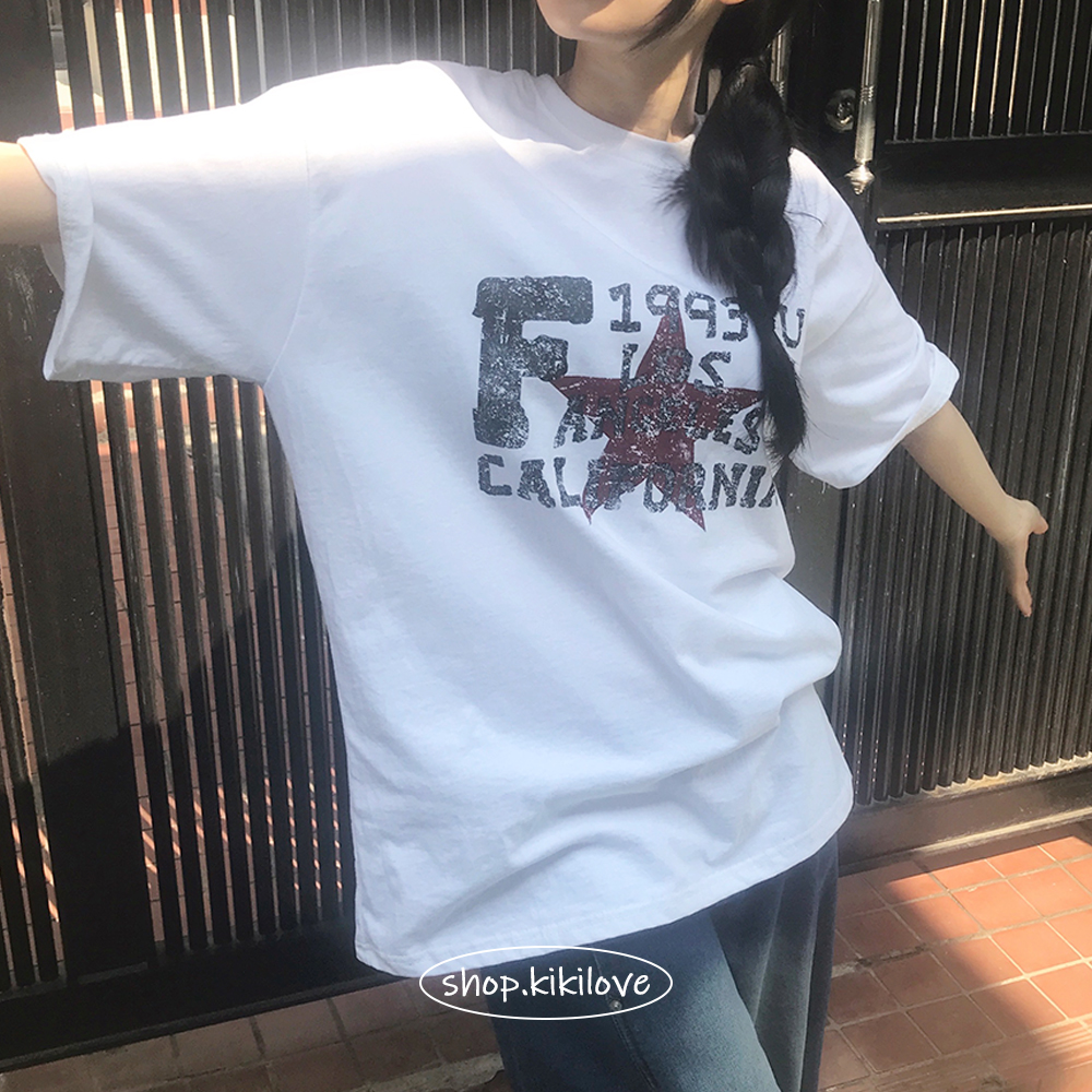 [빈티지/크랙나염!] *내가 찾던 박시핏* 노리 1993 스타 캘리포니아 프린팅 라운드 힙 반팔 티셔츠 - 4color