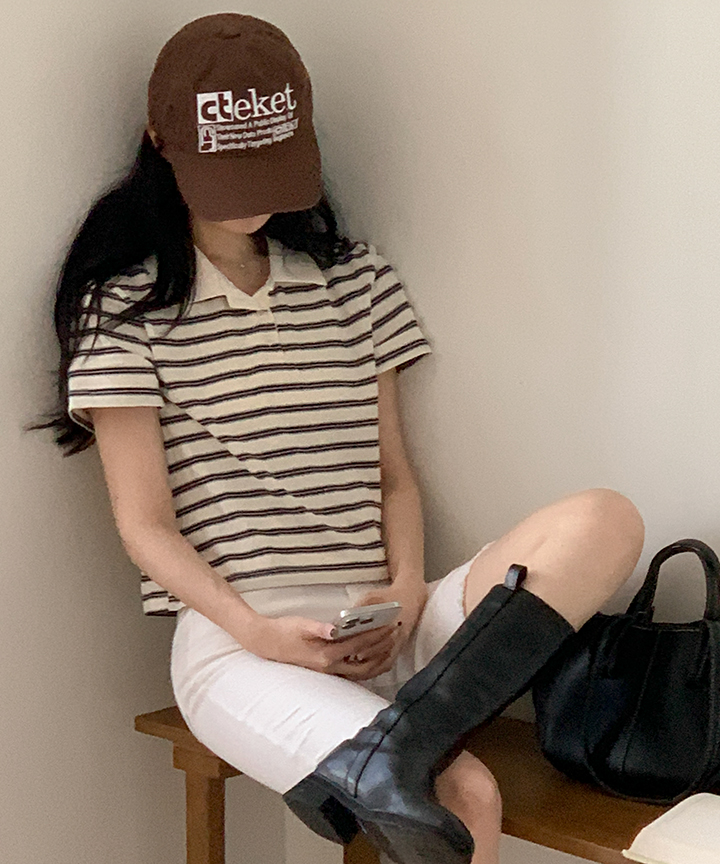 [럭비티🏈/단가라/반팔]포니 스트라이프 피케 티셔츠-3color(단가라티/반팔티/럭비티/기본반팔티/스트라이프카라티/오버핏반팔/크롭반팔/카라티/반팔기본/스트라이프럭비티/카라반팔)