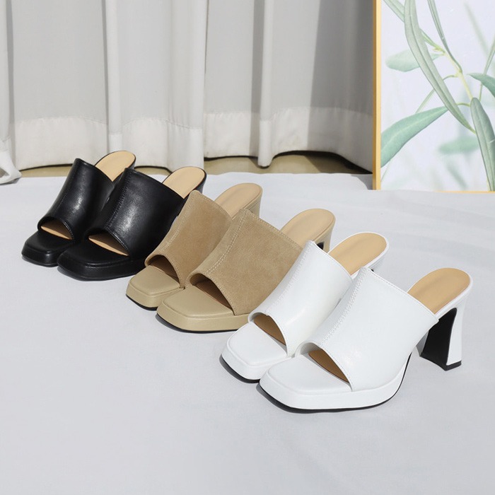헤이민 소가죽 와이드원탑 가보시 뮬 슬리퍼샌들(9cm)