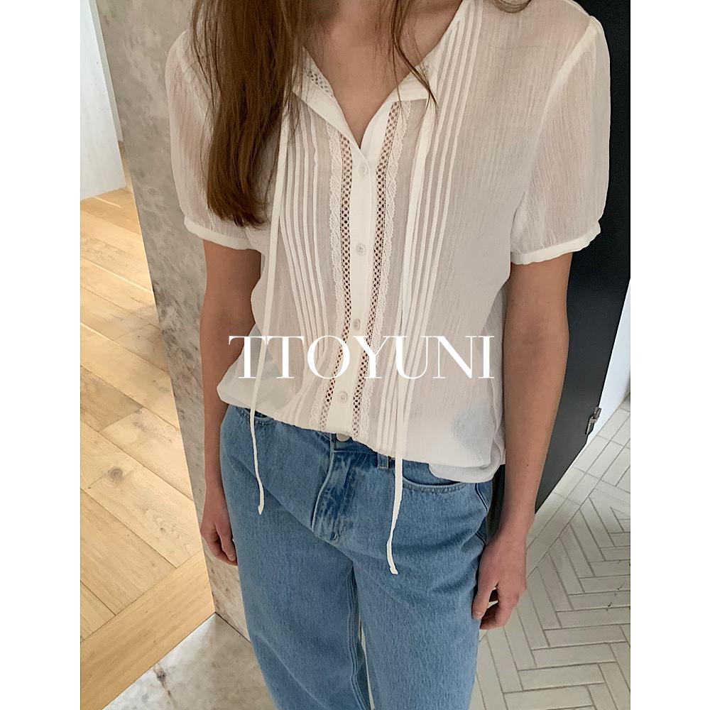 리에뜨 riette 테일리 블라우스 레이스 반팔 리본 떠유니