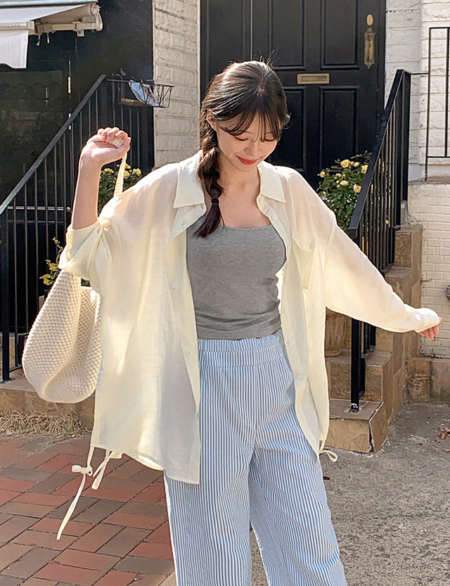 리뉴블 루즈핏 사이드 셔링 블라우스 81357