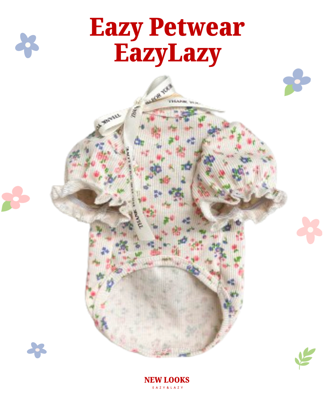 이지레이지 강아지 옷 꽃무늬 퍼프 골지 티셔츠