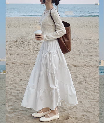 [5%할인🤍] 세렌느리본skirt (캉캉롱스커트,밴딩스커트,롱스커트🤍)