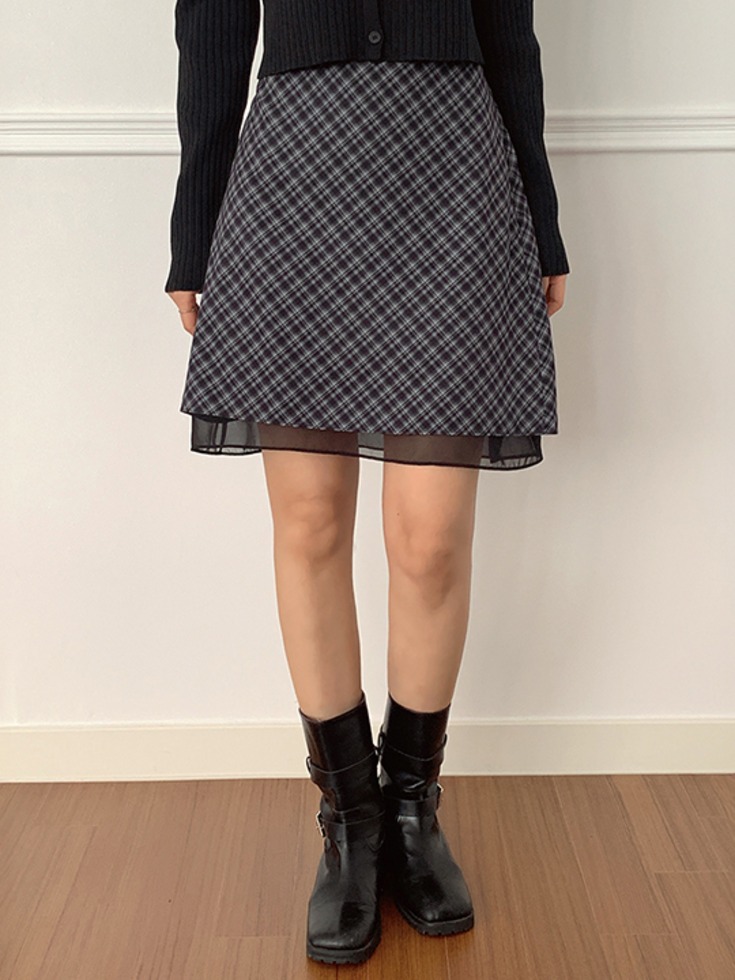 [레이어드템/빈티지무드] [25-38]레미언비 체크 쉬폰 뒷밴딩 미니 스커트(봄-가을-신상-데일리룩-여행룩-데이트룩-포인트룩-소개팅룩-출근룩-하객룩-캠퍼스룩-나들이룩-38사이즈-빅사이즈-자체제작-빈티지)