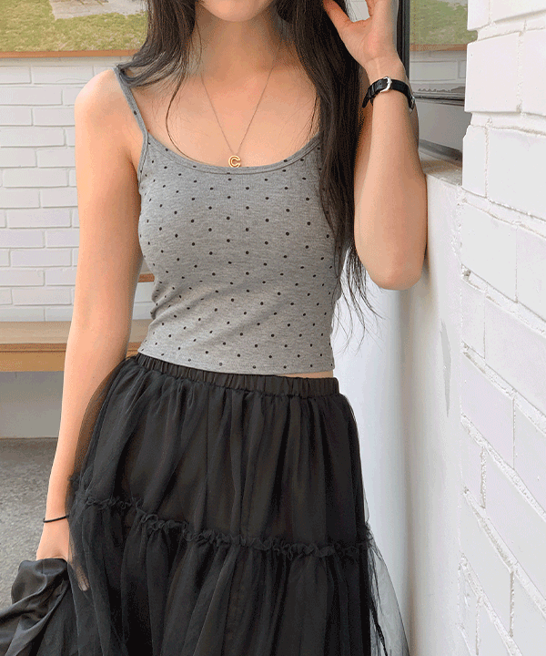 [캡내장] 엘라니 도트 크롭 슬리브리스 캡 나시 -3color
