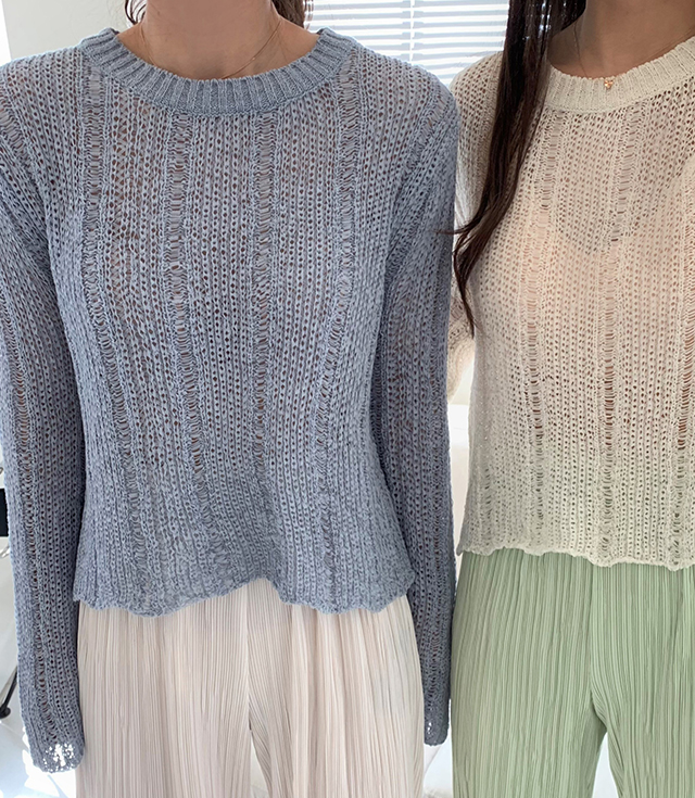 우드 부클 크롭니트(4color) [시스루 바캉스 휴양지룩 섹시]