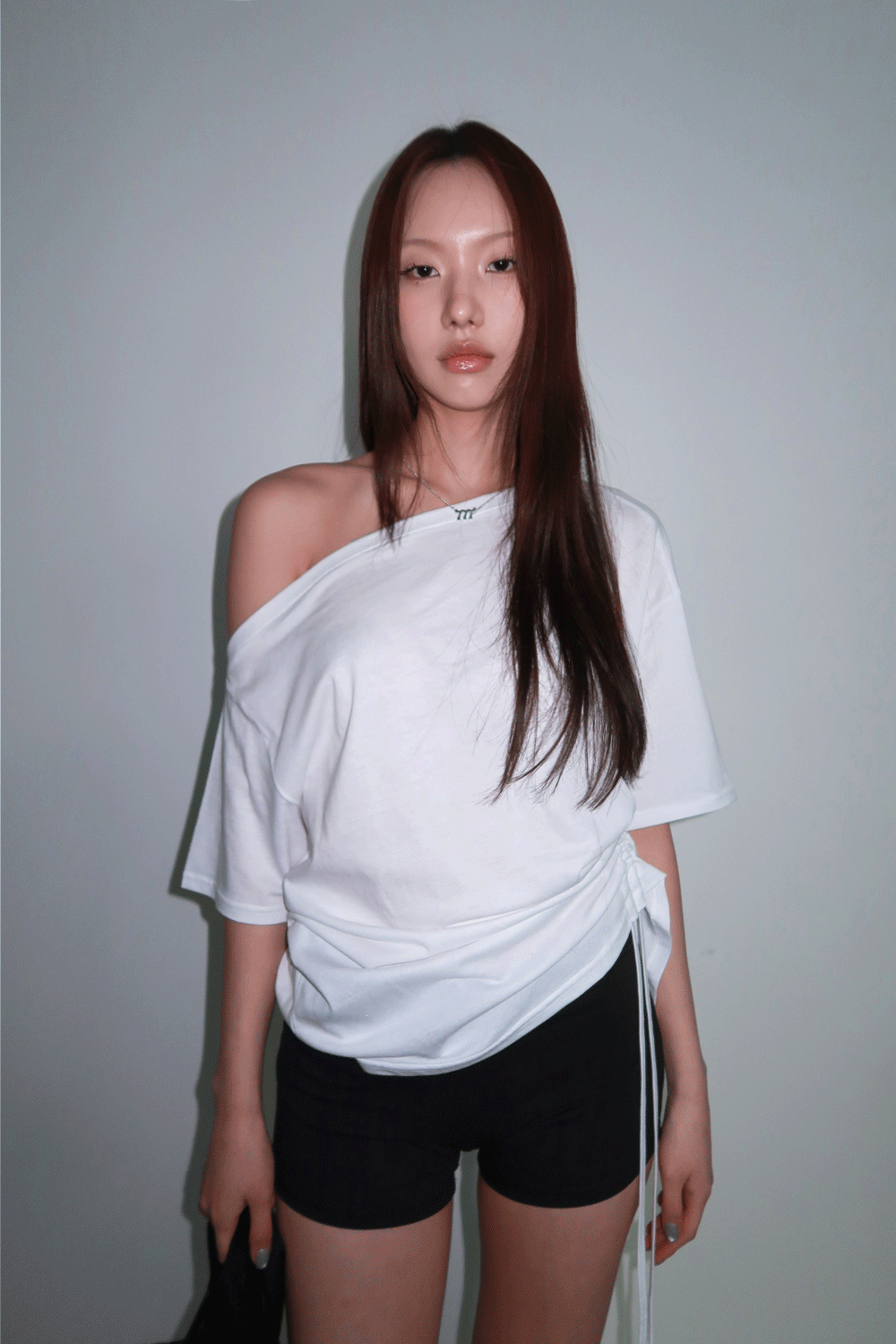 SIDE SHIRRING OFF-SHOULDER T / 사이드 셔링 오프숄더 티