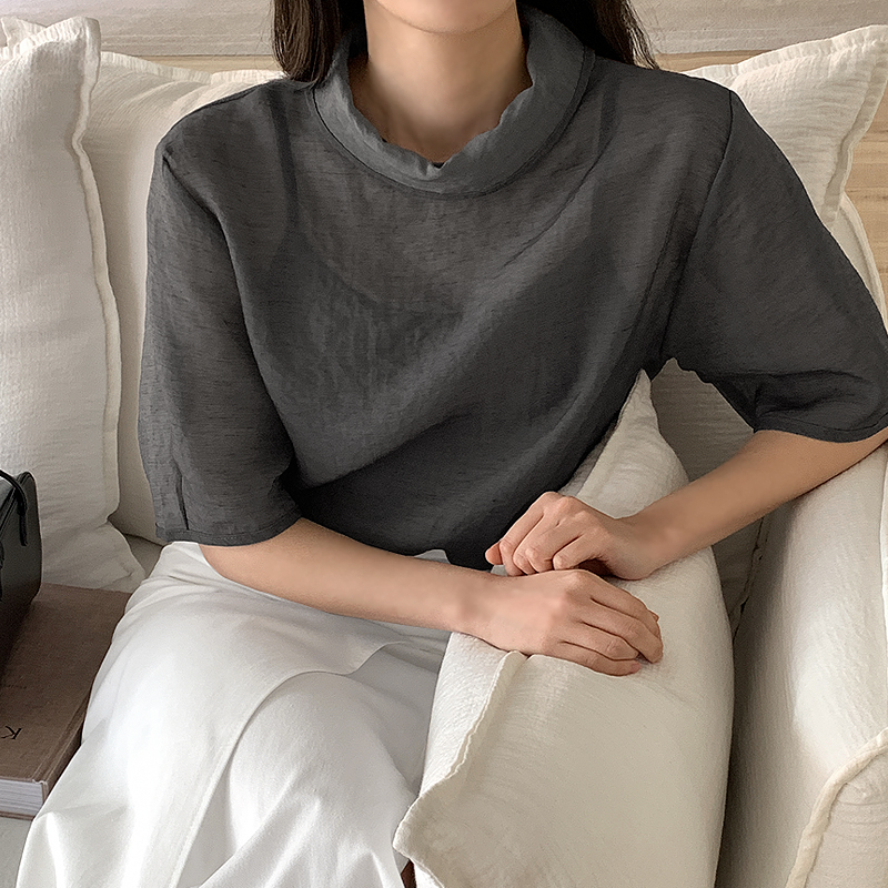 [가을블라우스✨/세련핏/여리여리]렌데 반목 자개 버튼 타이 반팔 블라우스 - 3 color
