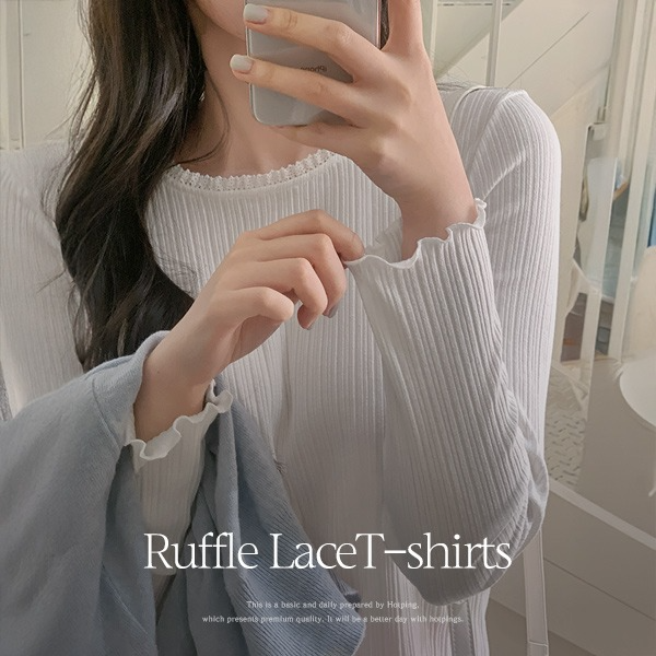 [복부커버/쫀득스판][MADE] 유얼리 러플레이스 스판골지 긴팔티셔츠(44~99) (빅사이즈티셔츠-베이직핏-스탠다드핏-레이어드티셔츠-슬림베이직핏-물결넥-체형커버-군살커버-롱슬리브)