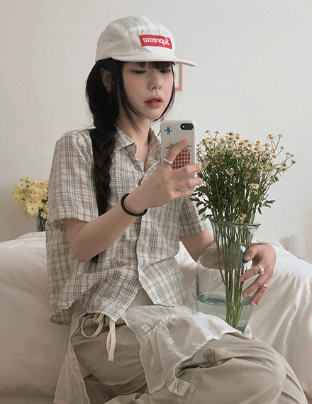 [빈티지/체크/하늘하늘] 라트링 체크 반팔셔츠