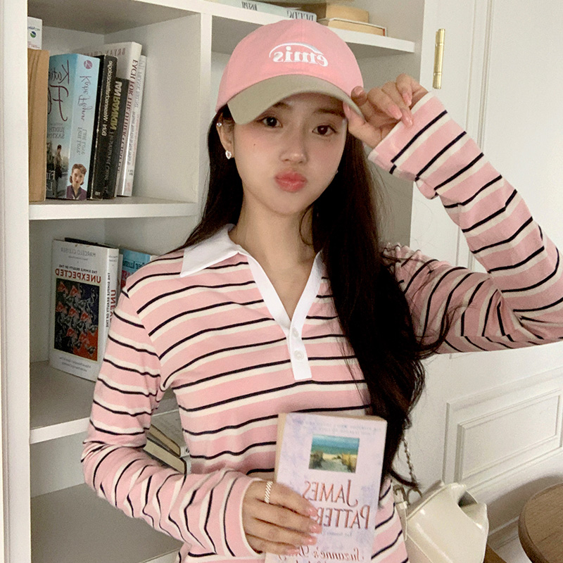 (럭비티/스포티룩)주문폭주 (캠퍼스룩/데일리룩/브이넥/데이트룩) 포민 스트라이프 카라 긴팔 티셔츠 나들이룩 ts4501