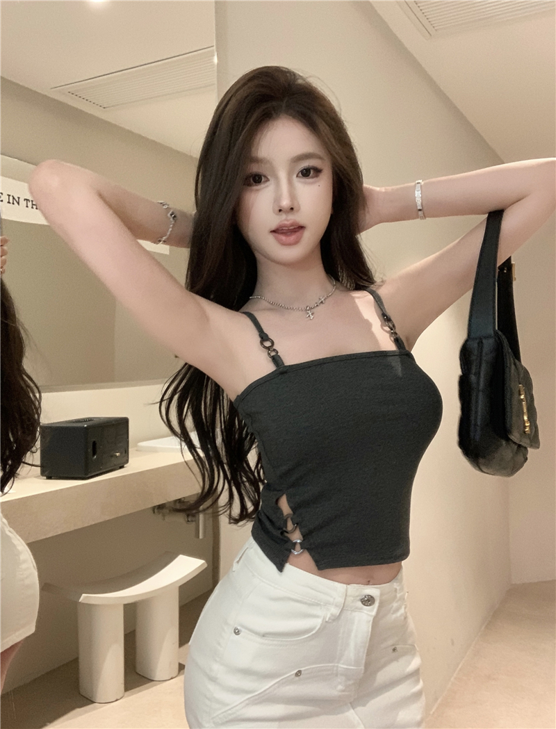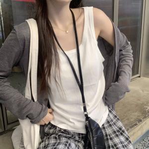 체인 스트탭 슬림핏 골지 나시 슬리브리스 티셔츠 비비카QL116