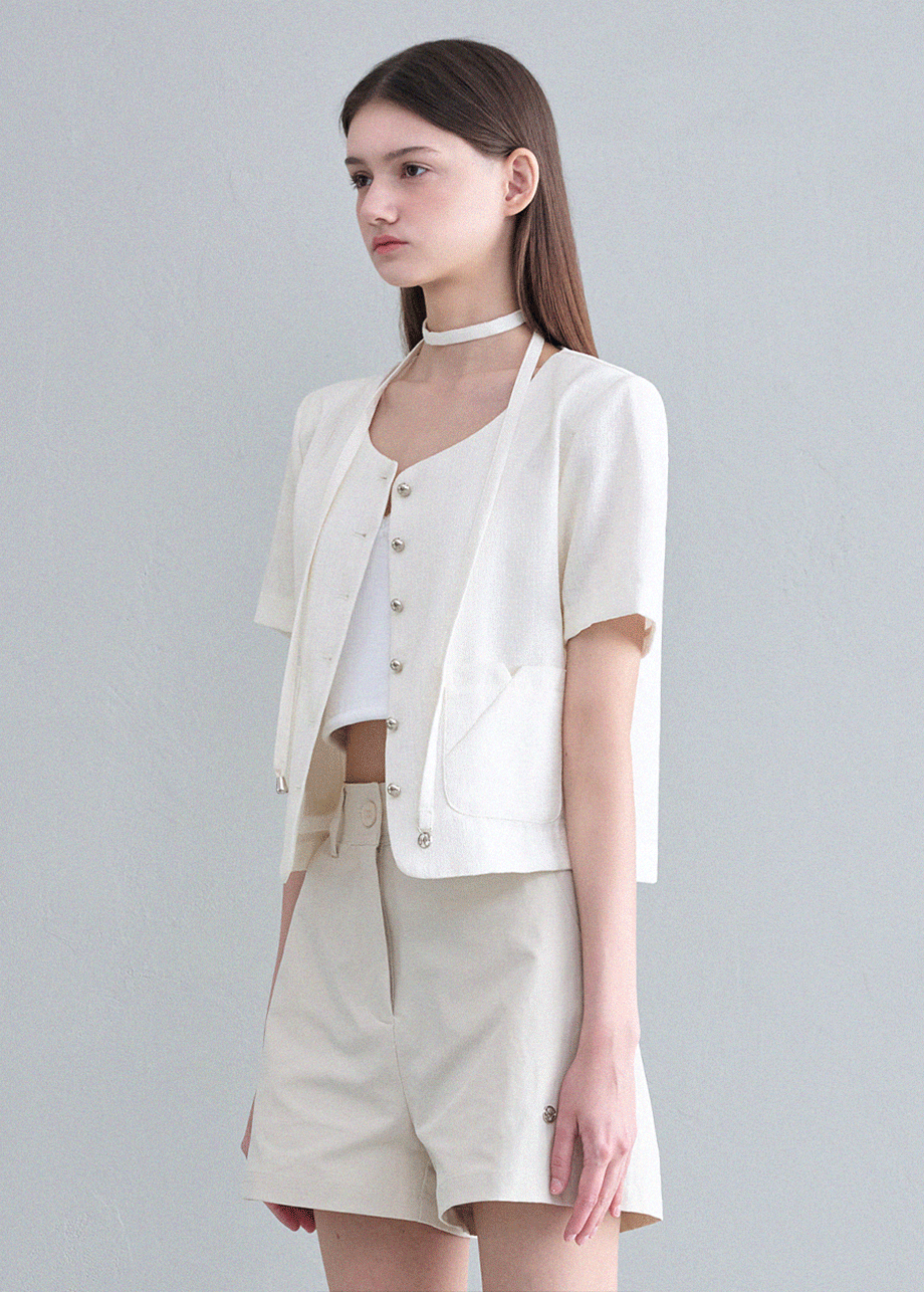 [44-120] Darlene Tweed Tie Jacket 달린 트위드 타이 자켓 (여름-페미닌룩-클래식룩-데일리룩-출근룩-고급-트위드-타이-포켓-투피스-셋업-빅사이즈-자체제작)