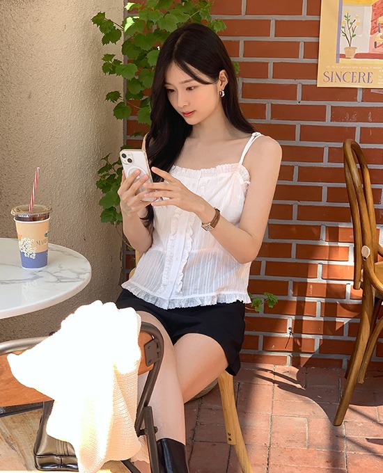 [LAST ONE SALE][휴가룩] 레이스 프릴 나시 (bl)