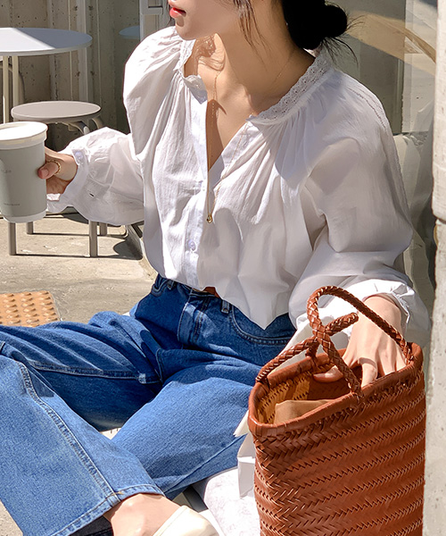 [단독][❤하객룩/오피스룩/출근룩] MADE 모코 루즈핏 펀칭 브이넥 블라우스 - 2color (긴팔블라우스)