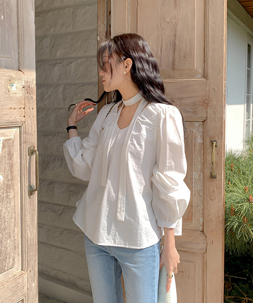 [단독][💐하객룩/격식룩/오피스룩] MADE 이브 브이넥 프론트 절개 코튼 블라우스- 3color (타이블라우스/출근룩)