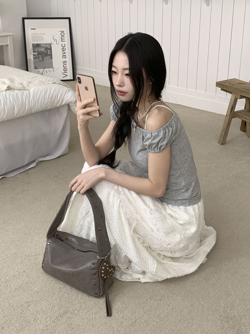 [20%할인/2type] 포엠 오프숄더 반팔 퍼프 블라우스 4color