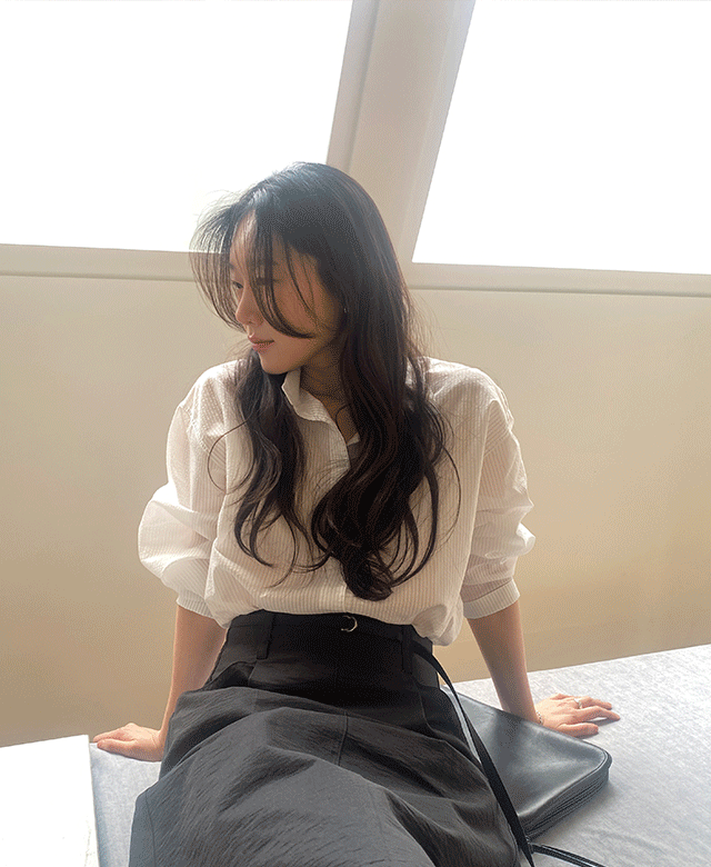 델가도 스트라이프 랩 셔츠 (2color) (*Two-way)