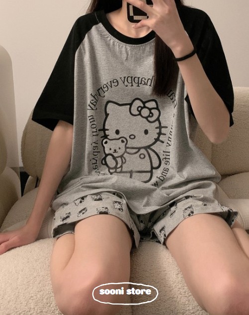 당일출고!! 키티 잠옷세트 귀여운 잠옷 반팔 반바지 홈웨어 잠옷 여름 잠옷 홈웨어 우정잠옷 파자마파티 편한잠옷 홈웨어 실내복 여름 반팔 잠옷세트