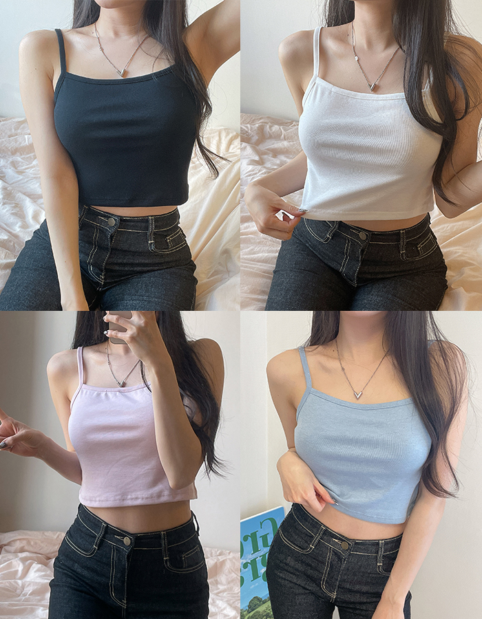 [길이별/6color]스무드 스퀘어 레이어드 나시 / 스퀘어넥 골지 나시 크롭 레이어드 나시탑 슬리브리스 이너 끈나시 길이별 나시