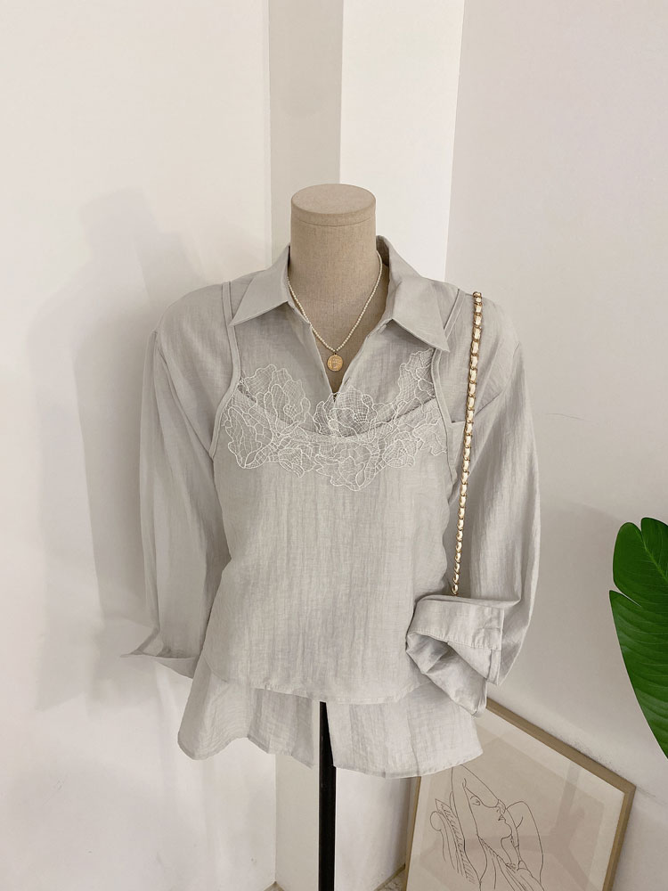 [세트] 트라브 레이스 뷔스티에 포켓 셔츠(3color)