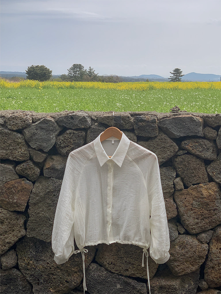 [여름휴가룩💙][MADE]볼리 링클 스트링 셔츠 블라우스[2color]