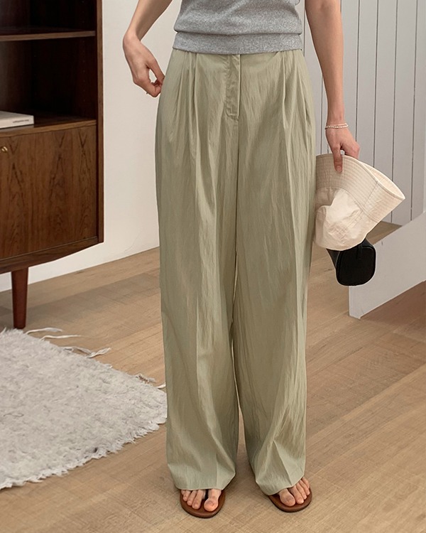 [뒷밴딩] 킨스 나일론 핀턱 와이드 슬랙스