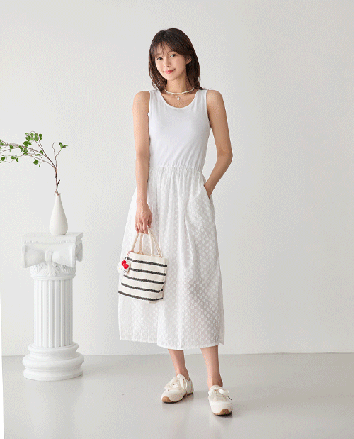 카리나 민소매 자수 원피스 [Free(55~66)]