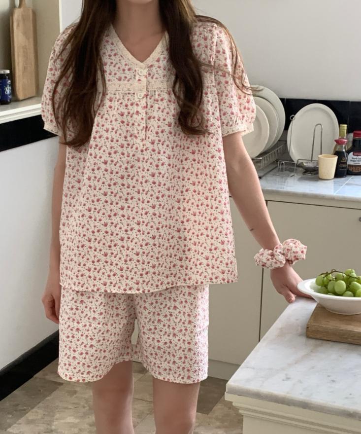 [직진🚀] 가든 여름 반팔 잠옷 원피스 파자마 시어서커 홈웨어 세트 2type