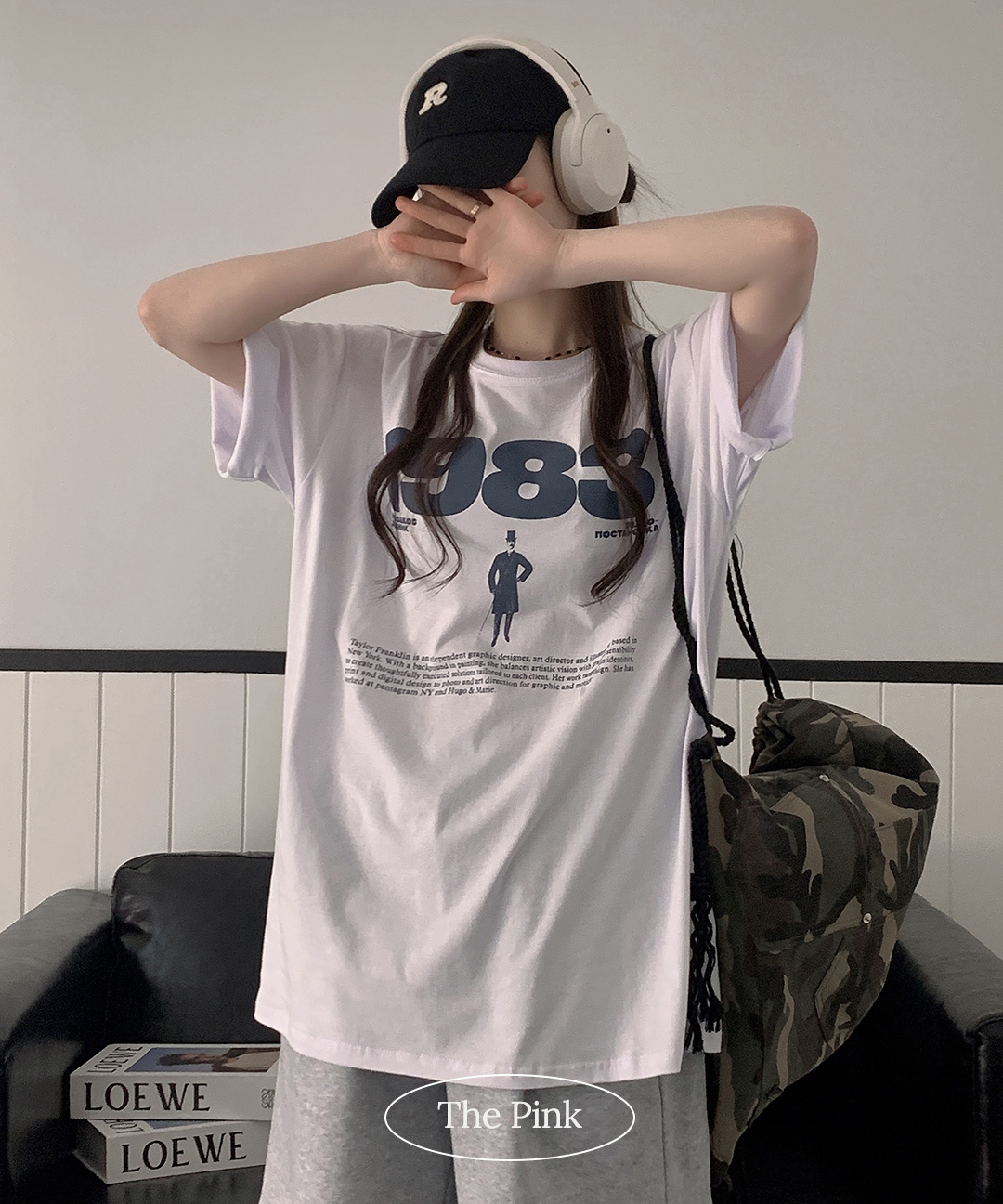 [박스티/커플템] 르안 오버핏 배색 1983 프린팅 반팔티 (4color)