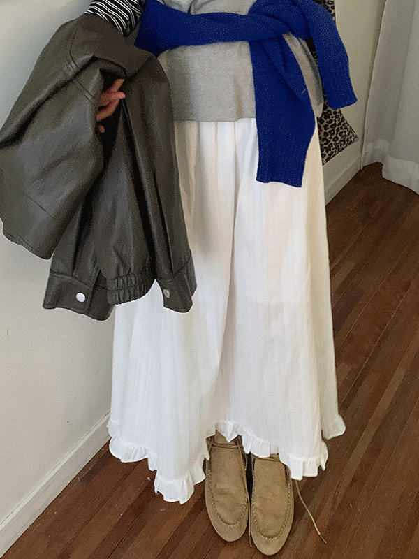[스웨이드ver추가!/인기🏆/후기보장/화이트소량당일/안감있음!/날씬핏] 크루어 프릴 밴딩 롱 스커트