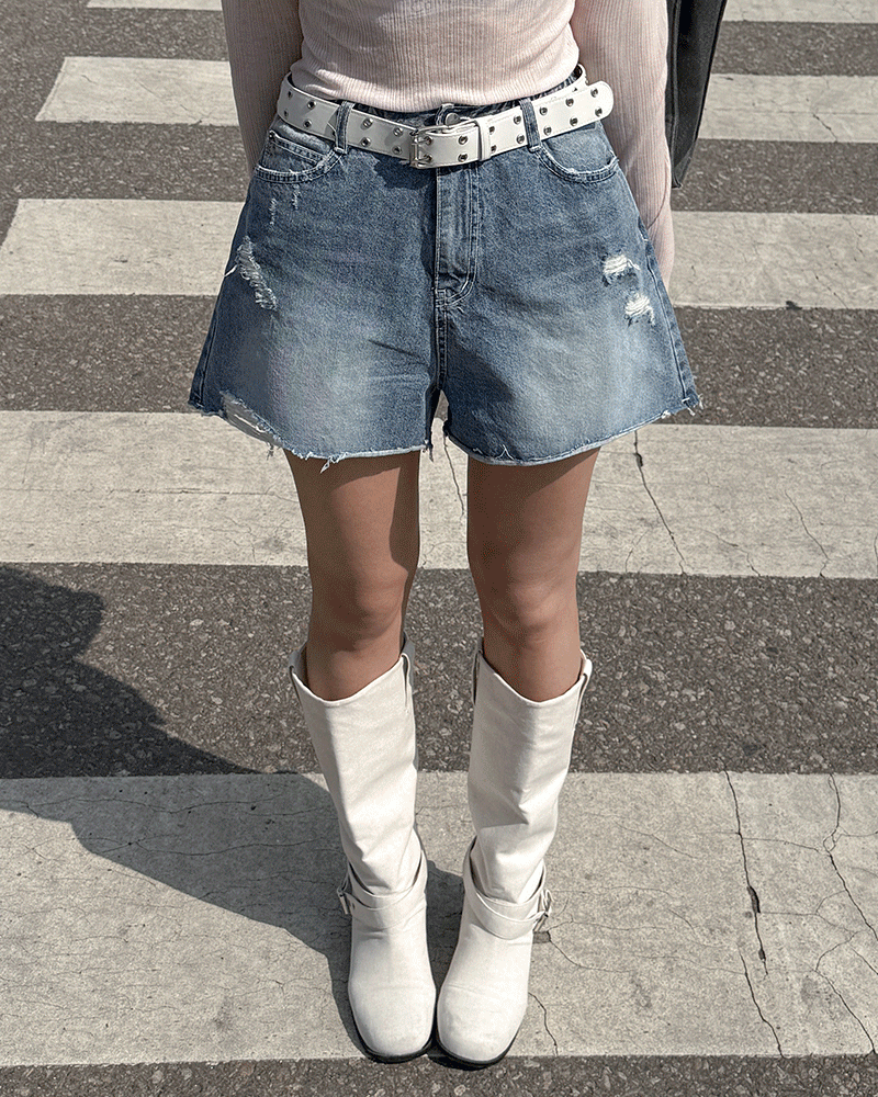 르코 데미지 밴딩 4부 컷팅 중청 데님 하프팬츠