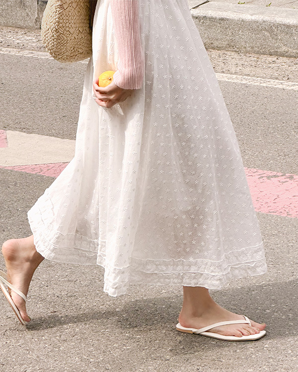 [무배][3천장판매/MADE]블랑슈 여름 플라워 펀칭 롱 스커트