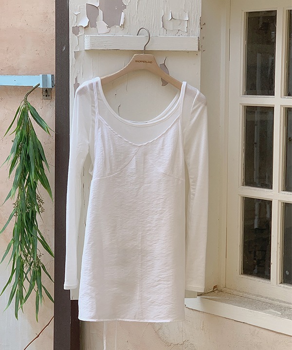 [가을][레이어드]유리얼 시스루 백 리본 레이어드 나시 블라우스 원피스 (3color)