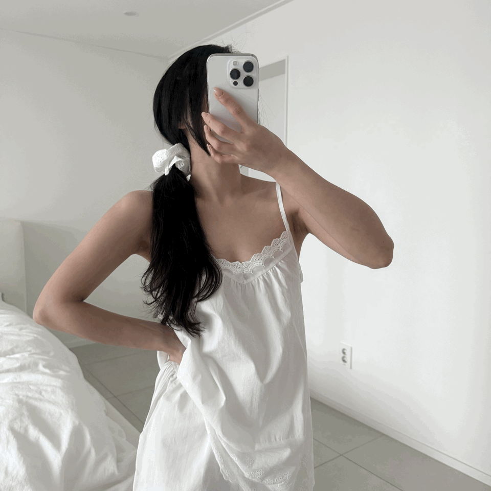 [+헤어슈슈]퓨어 화이트 나시+긴바지 3pcs 잠옷 홈웨어 세트
