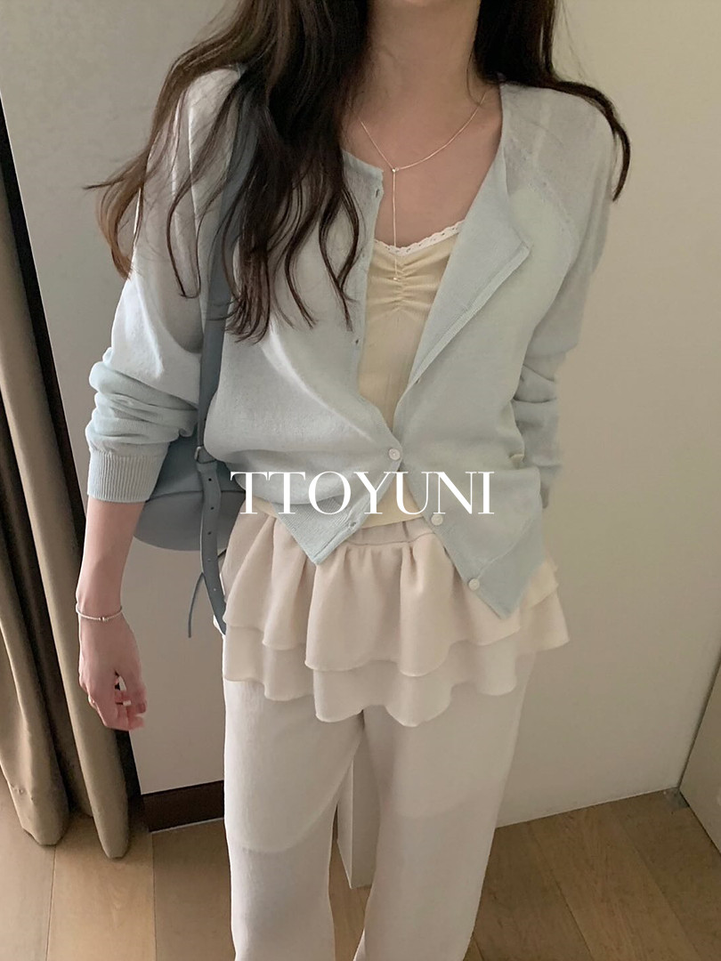 (당일) 프리티영띵 PYT 루즈 린넨 가디건 라운드넥 나그랑 자개뱃지 긴팔 여름 떠유니