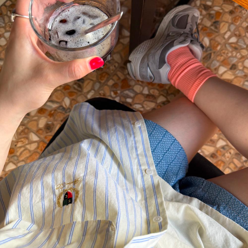 남녀공용 자가드 블루 숏팬츠