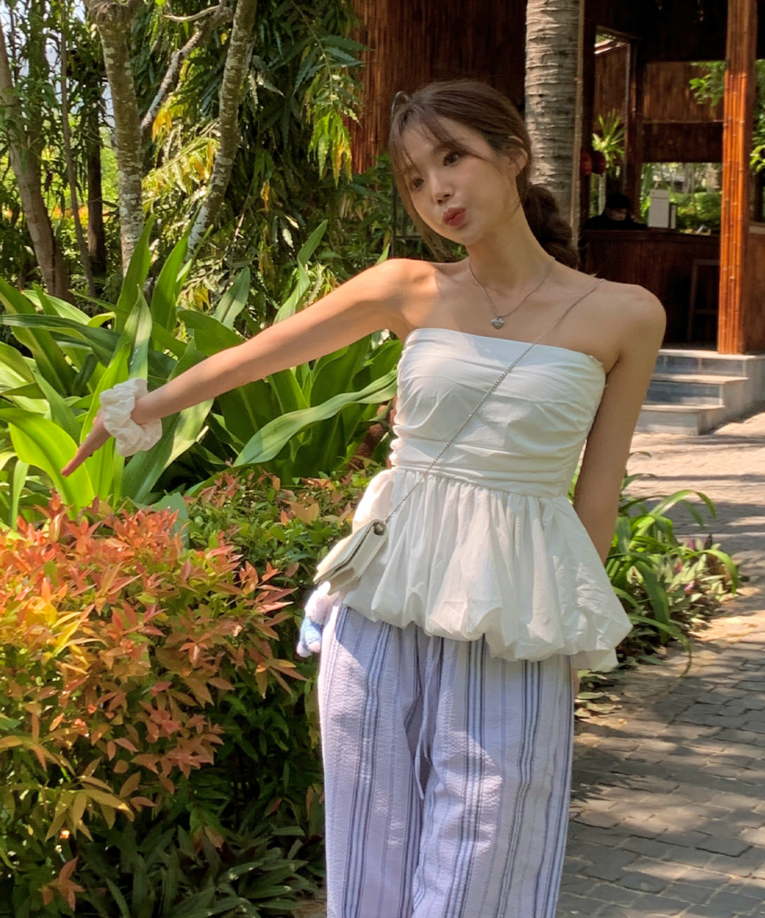 린코 튜브탑 벌룬 바스락 나일론 튜브탑 블라우스