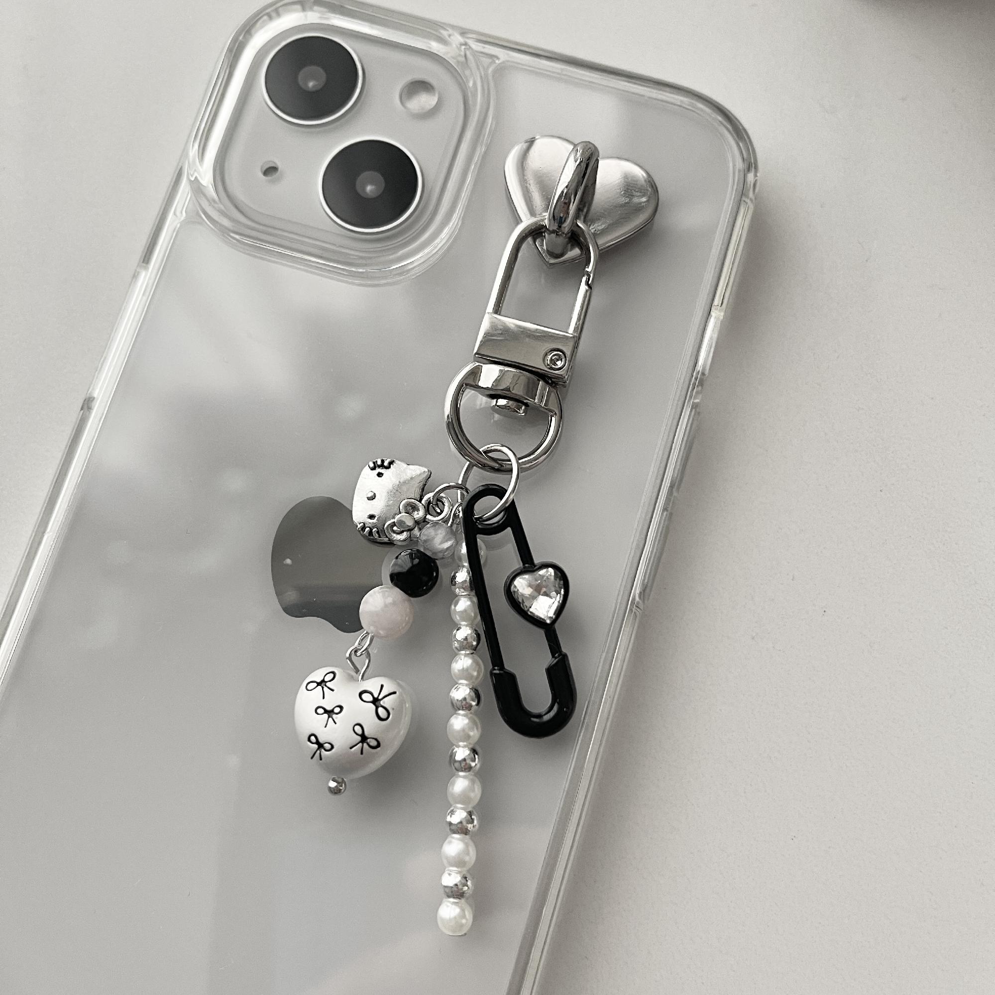 옷핀 하트 키치 고양이 키링 비즈 휴대폰키링 폰꾸미기