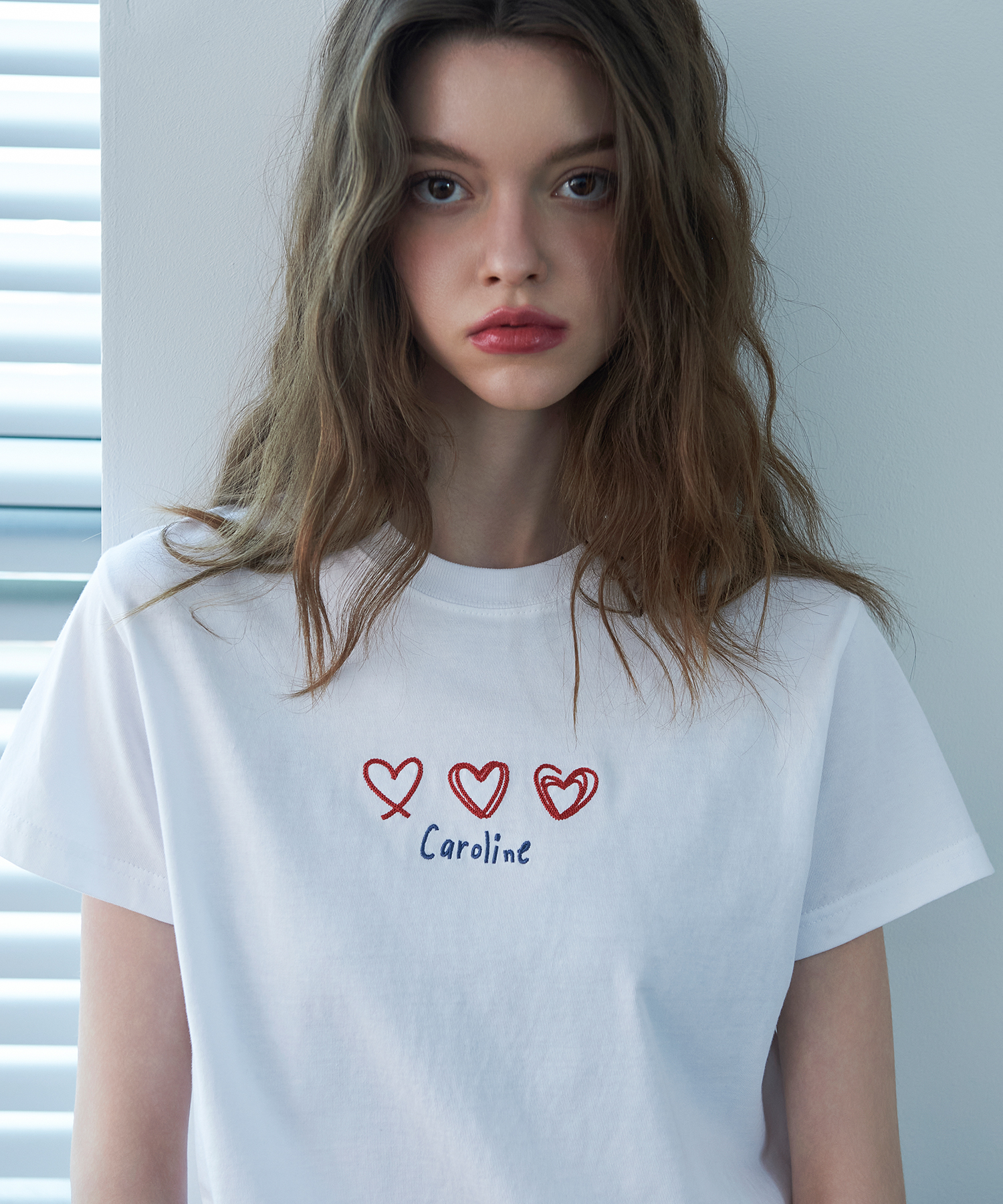 카롤라인 체인 자수 크롭 반팔티 화이트