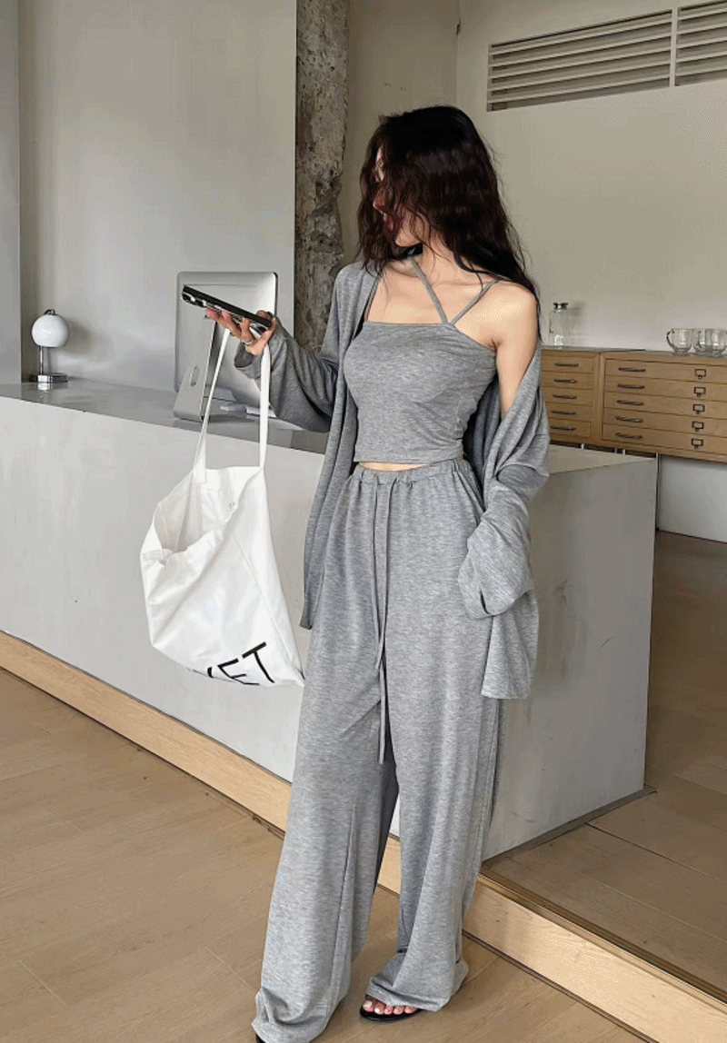 [3set]크롭 나시+ 와이드팬츠+ 가디건 세트(8109)
