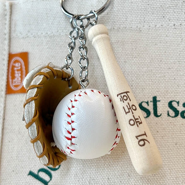 커스텀 각인 야구 배트 야구공 글러브 세트 키링 [KBO 베이스볼 스포츠 프로야구 운동 굿즈 소품 가방 꾸미기 악세사리 선수 팬 선물 기념품 공 방망이]