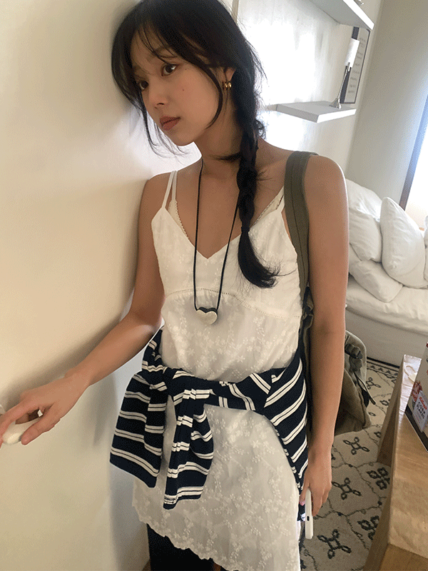 세이플 플라워 레이스 레이어드 원피스 끈나시 블라우스