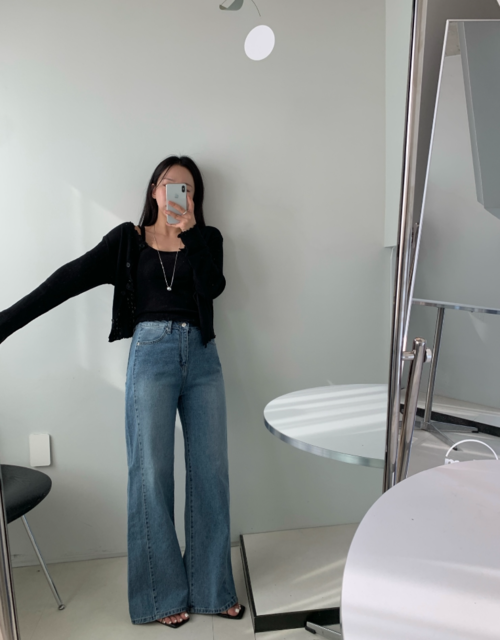 옆절개 라인 슬림 부츠컷 와이드데님 (1col)