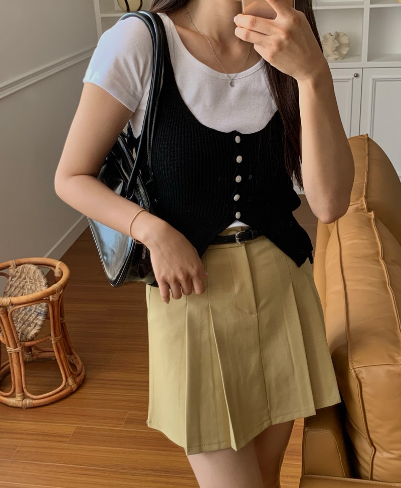 심플리 여름 레이어드 크롭 니트 뷔스티에 5color (여름/ 여름니트/ 니트조끼/ 나시/ 여름나시/ 출근룩/ 하객룩)