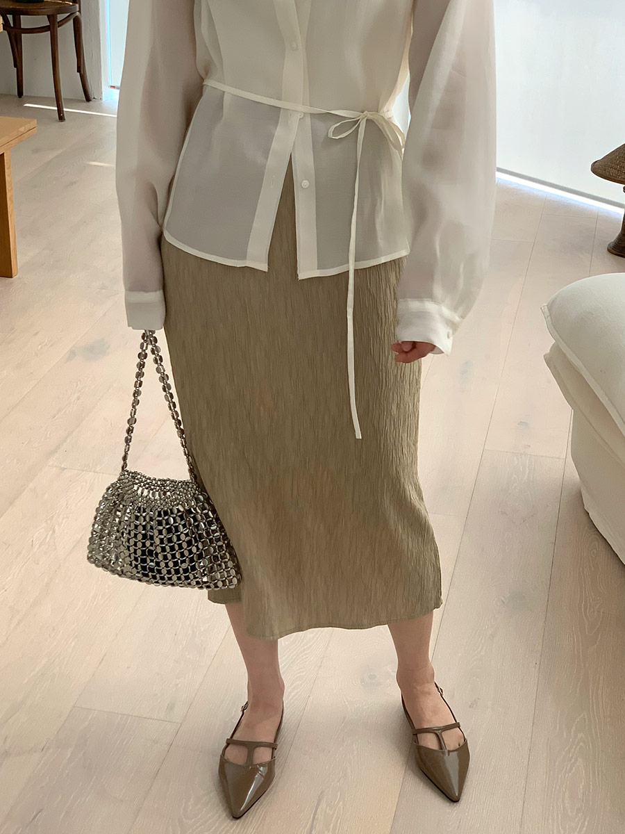 [당일배송] 라카온 링클 주름 머메이드 백슬릿 H 롱 스커트 5color