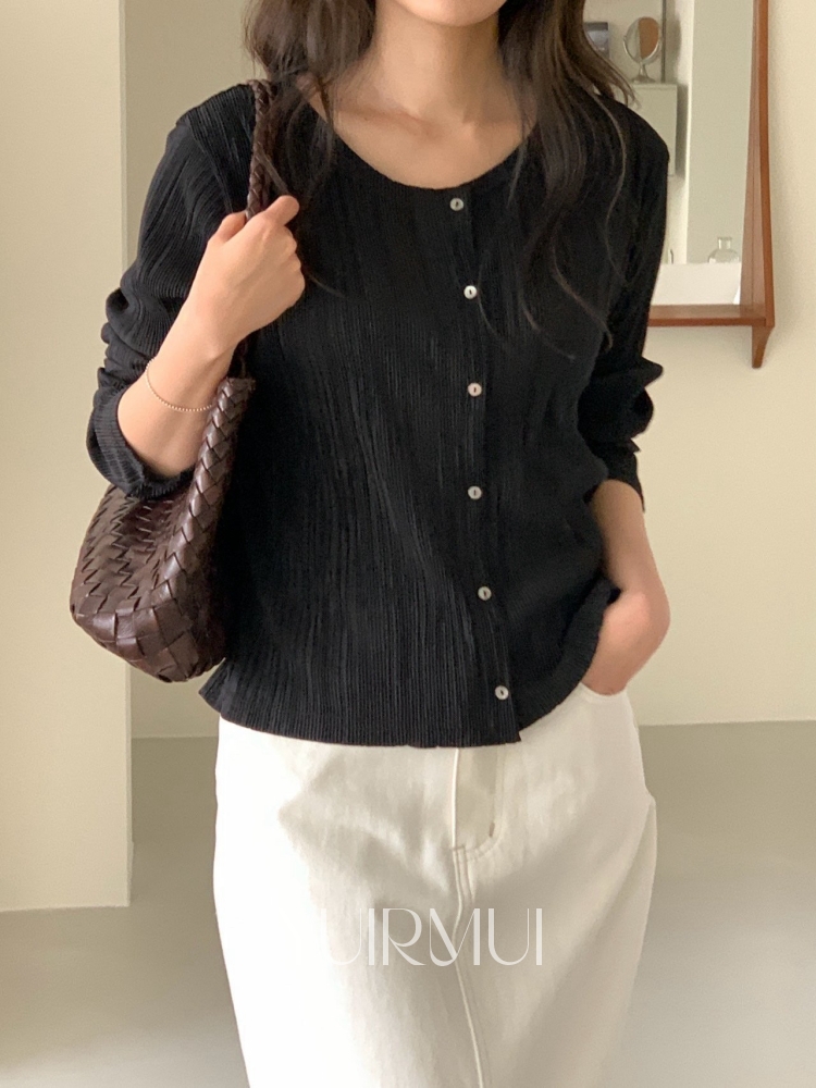 verveine 버베인 리엘 플리츠 라운드 가디건 2color