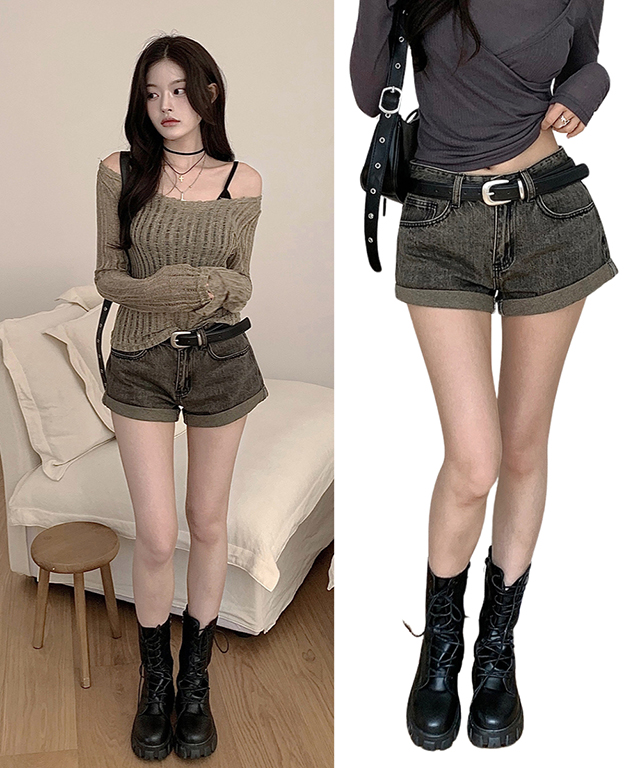 [톤다운💗벨트set/허벅지반쪽] 그레이 벨트세트 빈티지 워싱 롤업 A라인 데님 숏팬츠 여름 반바지 / 휴가룩 데이트룩 캠퍼스룩 흑청 연청 그레이진 청반바지 데일리룩